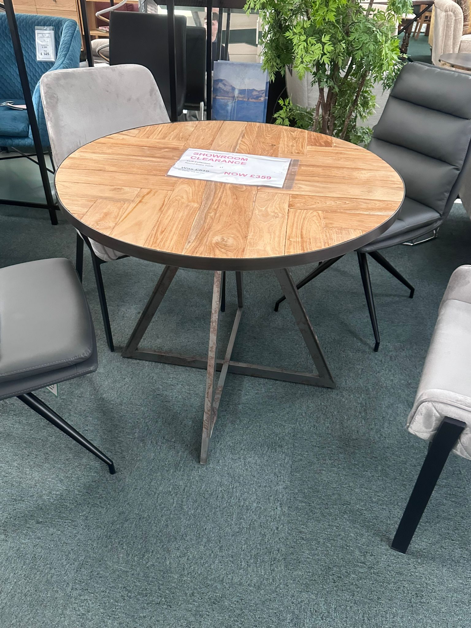 Skiff Dining Table. Industrial style base with wood top. LAST AVAILABLE!!